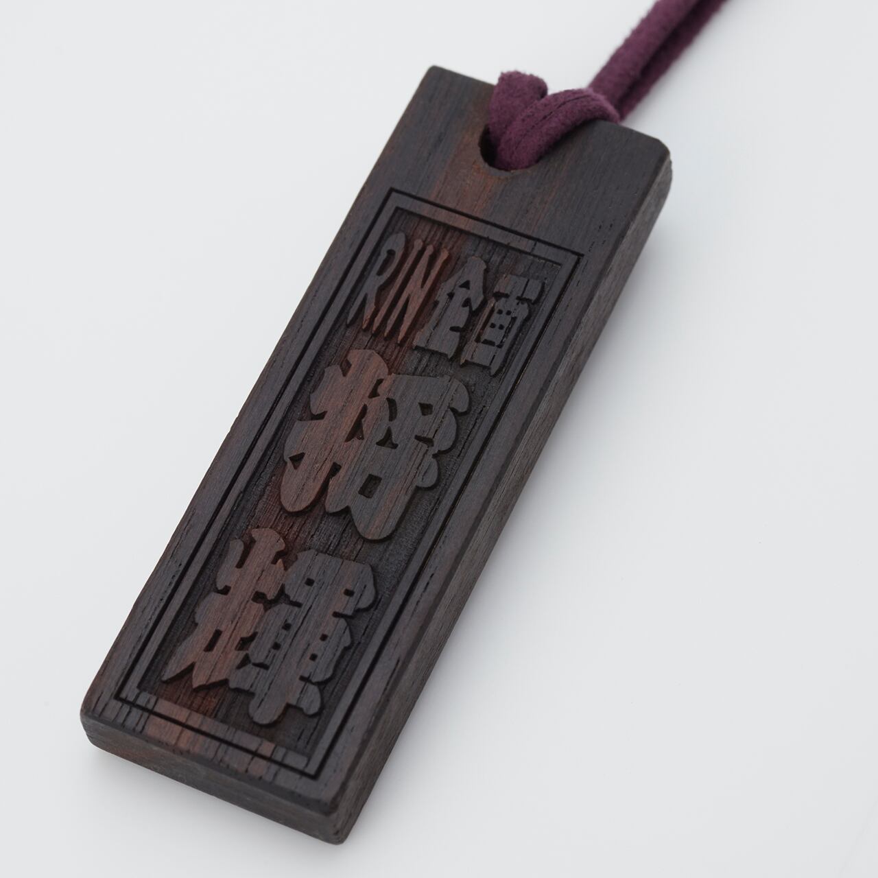 黒檀と銘が生み出す深い色合いと、世界にひとつだけのネックレストップ(木札)として愛用いただけます。