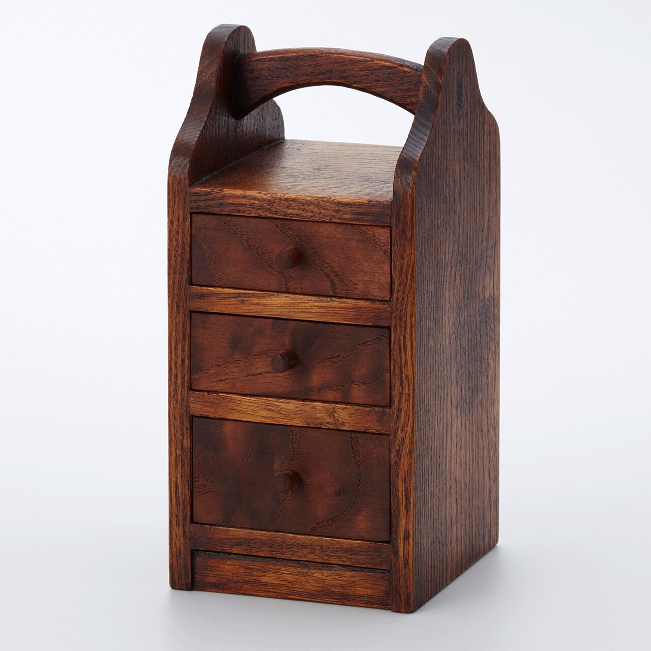 素材には、**軽く湿気に強い桐(キリ)**を本体に、堅牢で美しい木目のクワ材を引き出しに使用。拭漆仕上げにより、木目の自然な風合いを残しつつ、上品な艶と耐久性を実現しています。
